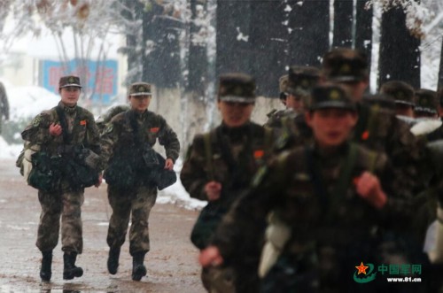 解放军男兵光膀子雪地飞扑 女兵风雪拉练