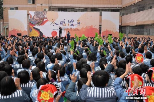 成都女子监狱“冬暖彼岸”彝族年暨服刑人员百名未成年子女帮扶活动现场。