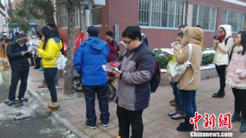 11月29日上午8时,距离2016年国考公共科目笔试开始还有1小时时间,北京市中关村中学双榆树校区的考点外已经聚集了大批等候进场的考生。中新网张尼 摄