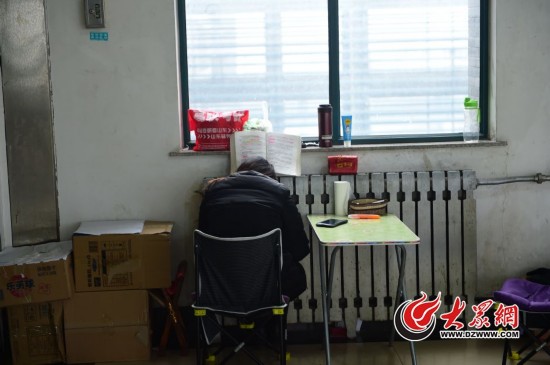 原标题:探访走廊里的考研大军: 学霸身盖毛毯苦读
