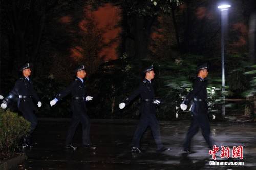 在湖北省宜昌市的三峡职业技术学院,每到晚上7点,几名身着制服的护校队队员便打着强光手电,开始在校园里例行巡逻。2013年,由于学校安保力量有限,为了排查隐患和搜集安全信息,排查和化解学生之间小的矛盾和纠纷,营造和谐的校园环境,三峡职业技术学院设立了护校队。李传平 摄