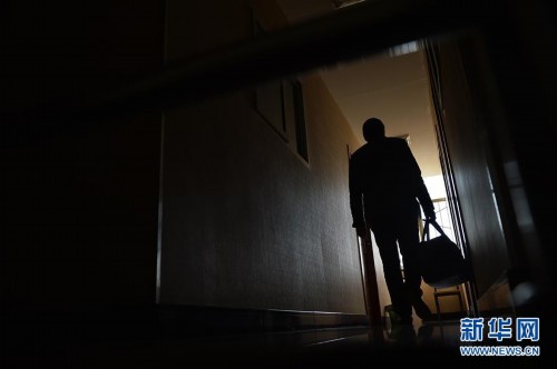 在宁夏银川市,何胜拎着包裹入住一家小旅馆。新华社记者 彭昭之摄