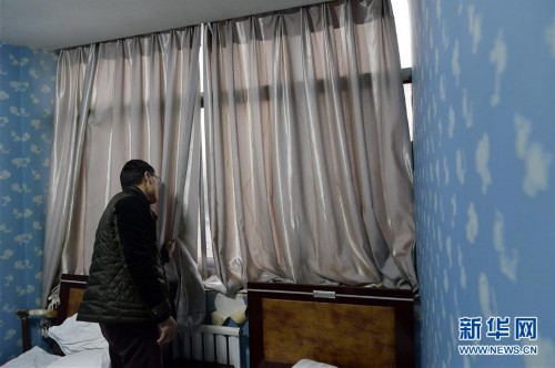 回到旅馆后,何胜打开窗帘观察周边的情况。要债和躲债的生活让他精神高度紧张(12月6日摄)。新华社记者 彭昭之 摄