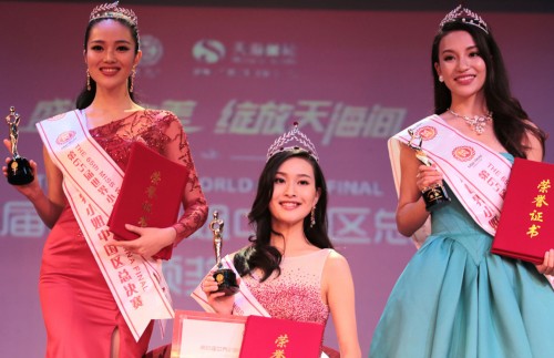 袁璐(中),何丽(右)和曹青青(左)分获冠、亚和季军。