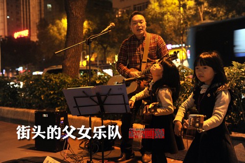 冬日的福州街头,6岁的双胞胎小姐妹,弹着尤克里里,时不时走调的童声,吸引了许多路人驻足观看。这个由父亲与其双胞胎女儿组成的“乐队”,成了福州街头一道风景线。吕明 摄