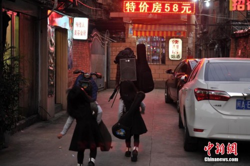 唐铭认为,在全国各地的游历,是让孩子学到看到更多的东西,锻炼她们的台风,成为她们人生中的宝贵经历,下一站她们准备去长沙。图为父女三人回到了她们住的小旅馆里。吕明 摄