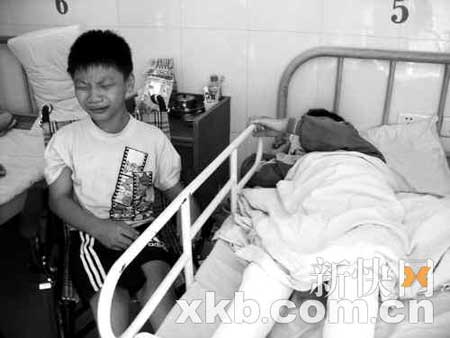 当哥哥阿为听到弟弟说"哥哥,希望有一天你也能站起来"时,不禁失声痛哭。 记者 王华平 实习生 周达标 李国辉/摄