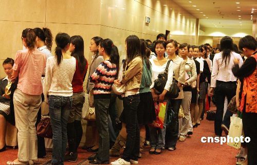 10月13日,澳门航空在上海举行乘务员招聘,二十多个名额却吸引千余名上海年轻男女前往应聘。 中新社发 潘索菲 摄