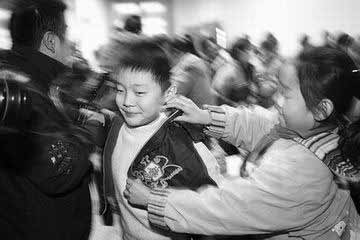 幸福课堂上,刘宏宇老师让五(1)班66名小学生,集体做一次游戏——为同桌穿衣服。
