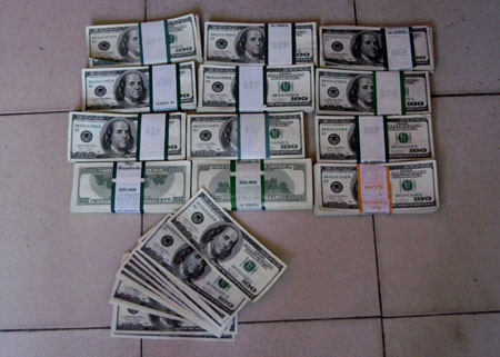 以两千五百元人民币购买一万假美元,再以三万元人民币的价格卖出去,在巨额利润的驱使下,云南男子方某购得11万元的假美元准备在昆明出售。12月29日,正当方某窃喜假美钞能轻而易举就出手时,眼前的“买主”突然变成民警,方某连人带“钱”,被一举拿下。
