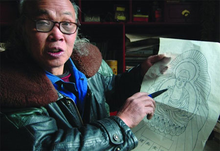 这位老人是洛阳的退休干部史洛生。“梅花针,这可是武侠小说中常用的暗器。”史洛生昨天跟记者一见面,就给记者找出一枚针,“你看这和普通的绣花针有区别没?梅花针的针尾较重,主要靠投掷伤人。你别小看武侠书里写的兵器,其实古代都曾有过,我造的也多是经过考证的。”“平日金庸的武侠小说我可没少看!”史洛生老人爽朗地笑了笑,拿出一幅“护身金佛”短兵器图纸,讲起了他造兵器的历史。