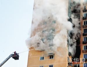 昨天上午8点,记者看到,事发小区门口已拉上警戒线。大量消防车、警车及120急救车停在门口。12号楼14层西侧的几个窗口处还在不断向外冒着浓烟,并有玻璃碎片从楼上掉落。消防员站在高架云梯上用水枪扑灭余火。