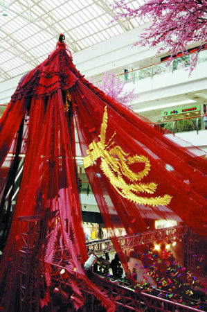 为了追赶奥运风,商家可谓费尽心思。昨天,一款长达999米、带有浓浓奥运色彩的中国红婚纱亮相天兴·罗斯福中央大堂。这是由大连婚庆协会筹委会举办的今年婚庆流行趋势现场展示活动之一。