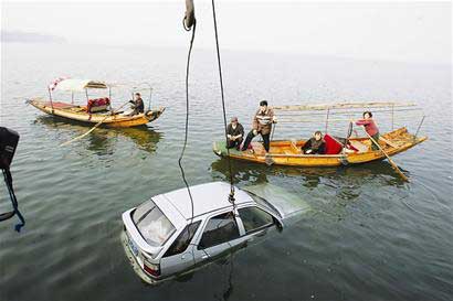 63岁的陈汉安说,轿车入水处距岸边只有几米,在车身下沉中,司机砸碎了玻璃,迅速钻出车外,并用手机报警求助;坐在副驾驶座位上的女子,因穿的衣服较多难以脱身。轿车下沉时还向湖心漂移,站在寒冷刺骨湖水中的司机,奋力拉出了女同伴,此时女同伴已被吓晕,湖边是两米多高的陡坎,司机抱着女同伴在湖水中苦苦挣扎。
