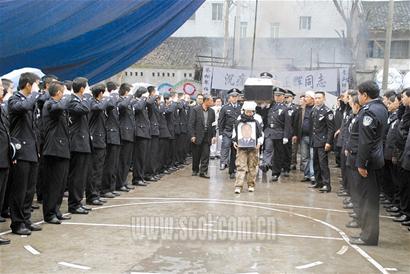 民警凌晨累死值班室 千名群众戴黑纱送行
