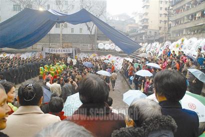 一个普通的社区民警因工作劳累突发心脏病,猝死在值班室,上千名群众自发冒雨为这个他们心中的好民警送行。3月9日上午,蒙蒙细雨中传来阵阵哀乐,四川合江县公安局合江镇派出所百花亭社区民警李正辉追悼大会在合江县百花亭球场举行。除了李正辉的战友和亲属,黑压压的站在细雨中为他送行的是上千名社区居民。他们或臂戴黑纱、或手握白花,在李正辉的遗体前深深地鞠躬。