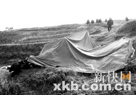 ”昨日上午,记者根据路人反映,驱车赶往驻马店市泌阳县铜山湖风景区空中游览观光飞机西一公里远的一处小山丘处,见到了坠毁的飞机。有几人看守着现场,飞机已经被人用帆布盖住。