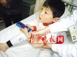 昨日,扬州苏北人民医院收治了一个“奇怪”小病号——手指受伤的宝应县范水镇5岁男孩李斌斌。令人不可思议的是,小斌斌“自残”自己的手指,却没有丝毫感觉到疼痛!原来他患上了极其罕见的“先天性无痛无汗症”,该病在全球范围内的发病几率为十亿分之一,在江苏省尚属首例。