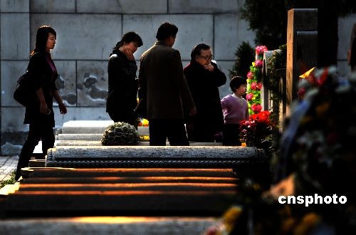 4月4日清明节,众多北京民众前往八宝山公墓祭奠亲人。交通部门表示,清明节当日是民众祭扫的最高峰,仅八宝山地区,祭扫人员就突破10万人。 中新社发 廖攀 摄