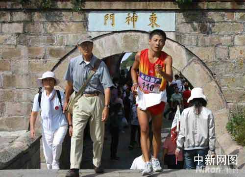 与往年相同,今年的登泰山比赛依旧分青年组、中年组、老年组三组。比赛从上午8:30同时开始,三组分别以泰山之巅——玉皇顶、南天门和中天门作为终点。与登山运动员们几乎同一时间向山顶出发的记者,一路悠哉悠哉的坐车到中天门,再坐缆车到南天门,然后不紧不慢的朝着玉皇顶进发。突然,一个很是熟悉的影子从身边轻巧的掠过,又快速的向前冲去。原来,排在青年组第一名的山东小伙子居然已经超过一路坐车走捷径的记者,向着终点玉皇顶冲刺了。