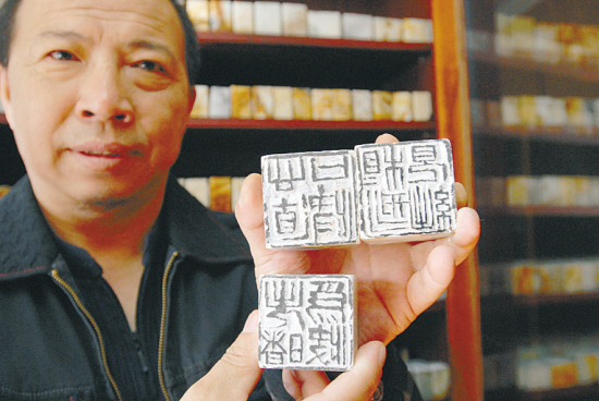 尝过苦痛,杨桂臣更感谢自己选择了篆刻,选择篆刻成语印,“现在看着满屋的石头,它们就像一面面镜子,照出了我这25年的人生历程。”更难得的是,这一屋子石头还促成了他和现在妻子的美满姻缘。