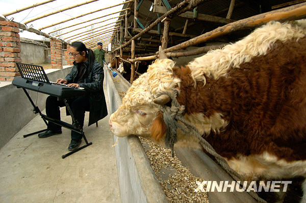 查阅大量资料后,刘海川发现,在国外早就有饲养员给牛听音乐的事例。从那以后,每逢晴天,刘海川就把钢琴搬到院里,给牛弹各种柔美的曲子。天气变冷,就在各个牛圈里装上音箱,每天定时给牛群播放钢琴曲。