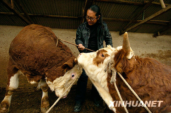 10月23日,刘海川在给牛弹琴。新华社记者 邵守志 摄