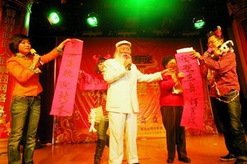 昨晚(1月21日),备受期待的长沙酱油春晚在一家星级酒店亮相。这台没有用一分钱赞助费、所有节目都是网友自编自导的晚会,带着它浓郁的草根味道,在将近2个半小时里囧翻了台下所有人,整个晚会现场笑声一片,演出者和观众都很HIGH。昨晚的酱油春晚,共分为雷人恶搞、群时代群生活、感动中国、欢庆与祝福四个章节,共有24个雷人舞蹈、小品、双簧等原创节目亮相,“酱油”“群生活”等词汇贯穿整台晚会。用组织者老段的话来讲,2009年将开创一个酱油春晚元年。据悉,酱油春晚将于除夕夜在PPlive播出,与央视春晚同时段PK,元宵节当天还将在相关媒体上揭晓出“最受欢迎节目”,奖品是一瓶酱油。