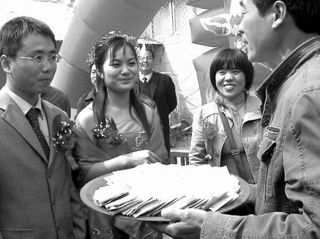 杨宏伟告诉记者,相对于形式,他更看重的是内涵。“现在的婚礼往往想方设法请来众多高级轿车,然后在豪华宾馆摆上若干桌酒席,请亲朋好友来吃一顿,既铺张浪费又没多大意义,还不如办得简单些,用节约下来的钱做些更有意义的事。”杨宏伟说,他将这个想法告诉妻子和父母后,得到他们的支持。