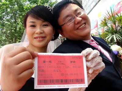 核心提示:19日中午,成都某酒楼一场特殊的仪式开始了。奇怪的是,前来的嘉宾人人手里拿着一张火车票。据记者了解,原来这可不是普通的火车票,而是新郎雷一鸣为婚礼专门设计制作的请柬。