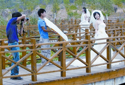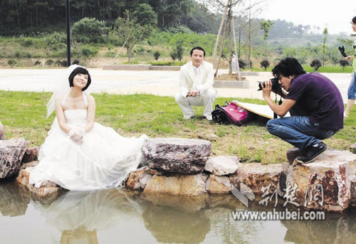 新人在陵园内拍摄婚纱照 记者饶纯武摄 (来源:楚天金报)
