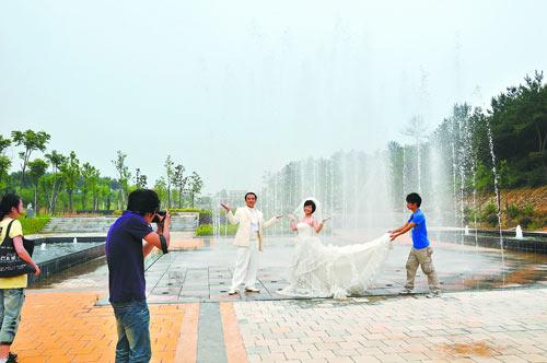 对许多人而言,墓地是忌讳之地,但昨日的黄陂长乐园陵园却迎来了两对“80后”新人,他们以陵园里的绿阴湖畔、喷泉长廊为背景,定格一个个甜蜜的瞬间。