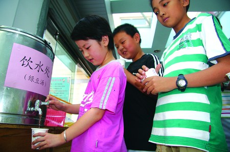 24日,经七路第一小学为学生准备了绿豆汤。靳鑫 徐洁 摄影