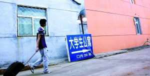昌平丰善村,一名学生拖着行李准备入住“大学生公寓”。在该村,备案租住的大学生有402人。 郭铁流 摄