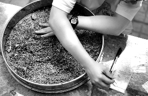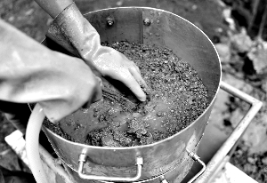 下层筛子中留下的细沙,将在晾干后,送到实验室,进行下一轮挑拣。