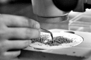 用显微镜挑选后的沙子还要由专家分析,以获取更多信息。