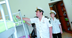 昨日,汇文中学,卫生监督部门工作人员在学生宿舍里检查卫生。当天,北京市对学校甲型H1N1流感的防控状况开展突击抽检。记者 韩萌 摄