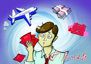 “10月1日同事小周婚礼,礼金200元,老上司的儿子也要‘挤’在国庆期间结婚。”更“要命”的是大学同学10月3日在北京举办婚礼,“礼金倒无所谓,关键是交通、住宿自理啊!来回机票全价,交通费要5000元,总体花费没6000元根本搞不掂。”