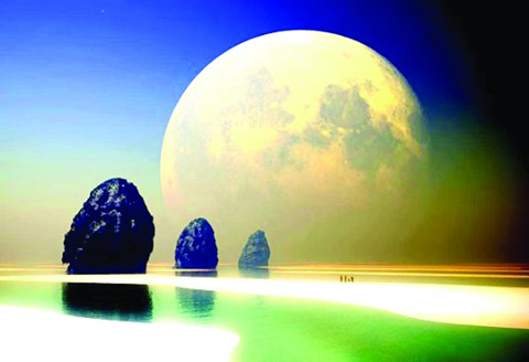 “微湖夜月”指明月与微山湖相映生辉的景色。