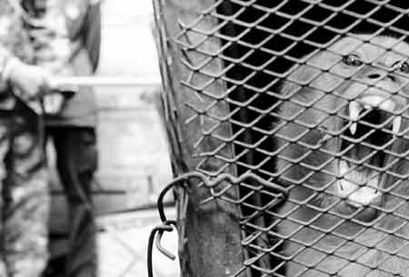 记者随同动保站的工作人员来到大东区明堂街刘先生的家里时,刘先生满面的无奈,院内的笼子里装着一只1岁半左右的公猕猴。