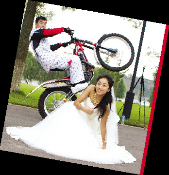 新婚的马涛昨天接受了本报的采访,对于这场让大家津津乐道的婚礼,他自己也非常得意,“跟最爱的人结婚,我也想融入我们最执着的东西。技巧自行车、摩托车,还有柔术格斗,我们玩的都是现在最流行的国际顶级极限运动”。
