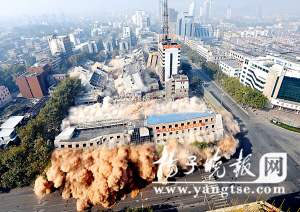 镇江6幢大楼应声卧倒