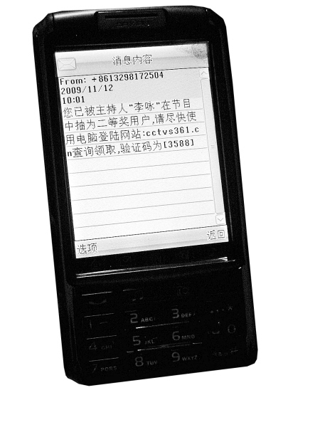 “您已被主持人李咏在节目中抽为二等奖用户,请尽快使用电脑登陆网站cctvs361.cn查询领取,验证码为3588。”收到这条短信,沉浸在喜悦里的陕西西安市民张女士并没有意识到,自己已经掉进了一场中奖骗局。
