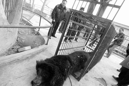 下午2时40分,郑州市林业局野生动植物保护处尚处长指派郑州市动物园的工作人员运来两个小铁笼子,准备将园内凶猛的危险性动物狮子和黑熊查扣。