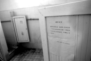 女厕所门上张贴的征友启事本组图片均由。 记者 胡健 摄