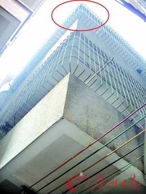 事发出租屋4楼平台(红色圈处)