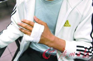 记者见到李岩时,他左手还缠着纱带,可以清楚地看到隐匿纱带中的小指已短了一截。