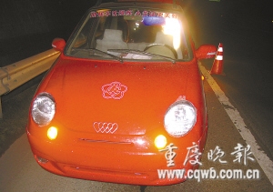 “它是轿车外型,摩托车"内脏"。”司机张某说这话时掏出残疾证,强调他驾驶的是加了铁壳壳的三轮摩托车。他坦言,车是前段时间在主城区买的,由于是新车,便在高速公路上试起机械性能——想知道到底能开多快。