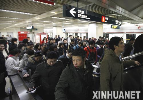 乘客滞留上海地铁1号线上海南站。 新华社记者裴鑫摄