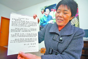 熊德明向记者展示自己写给温总理的信(草稿)。记者 郑 宇 摄